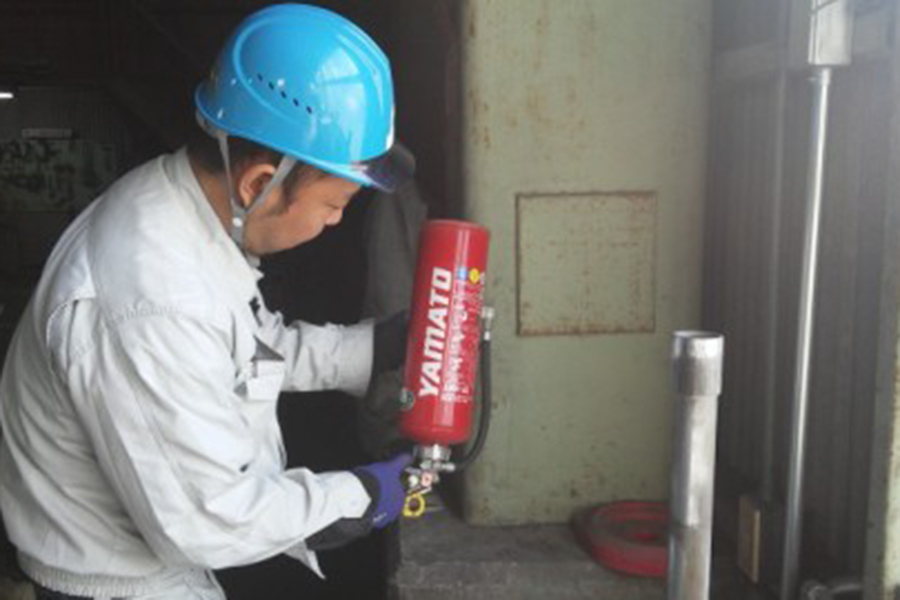 作成した施工プランに沿って、保守・点検、工事を進すすめていきます。お客様の万が一の時の安全を守るための作業ですので、入念かつ慎重に行います。管理者、オーナー立ち会いの下、作業を行うことも多いのでわからないことがあれば、しっかりご説明させていただきますので気軽にご質問ください。